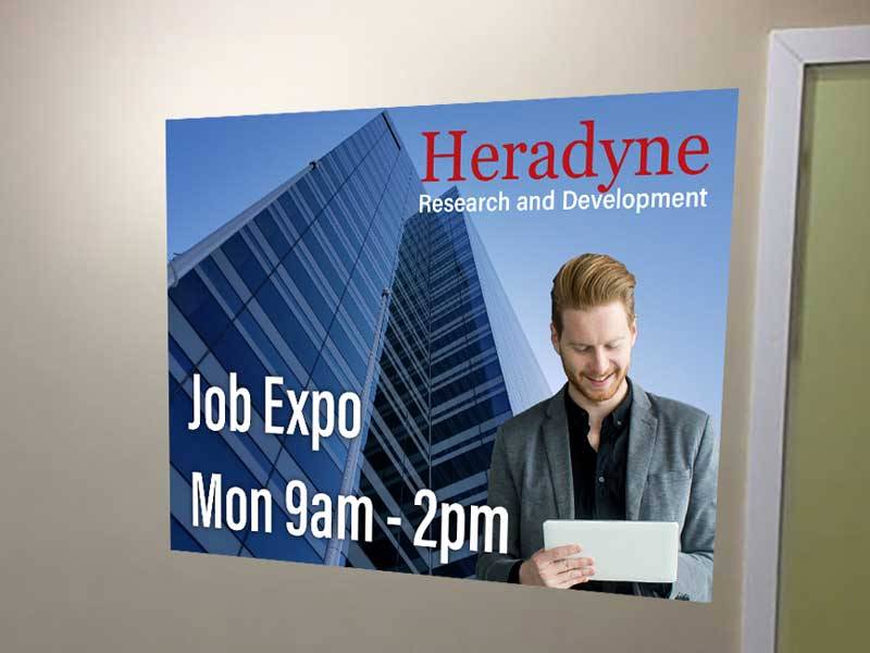 EZ STIK™ Smooth is printed digital direct in full color providing vibrant photo-realistic images that make your messages attractive and visually engaging. From small decals to large posters, graphics can be square cut or die cut into almost any shape adding character to your unique presentation.