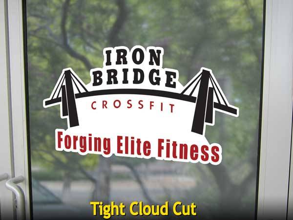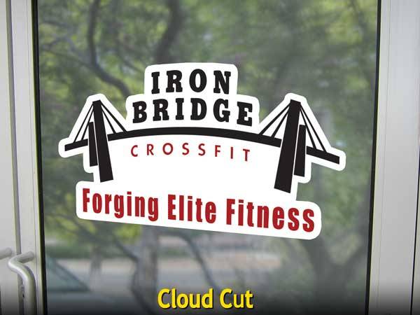 A single-piece graphic that is cut to shape with a “cloud” margin around the design.